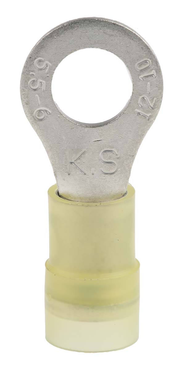| Product description | RS PRO Insulated Ring Terminal, M6 (1/4) Stud Size, 4mm² to 6mm² Wire Size, Yellow |