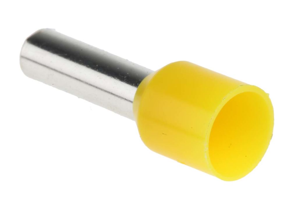 A bootlace ferrule is a metal tube or ferrule with a moulded colour coded insulating collar made from nylon. The ferrule is slipped over the end of a multi-stranded wire, crimped and then inserted into a screw or spring clamp connection.