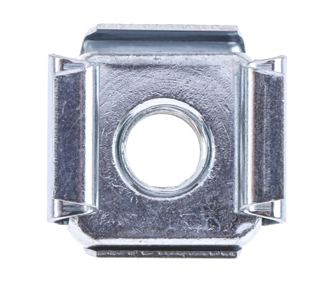 These RS PRO cage nuts are steel square nuts with a spring steel surround which wraps around the nut like a cage. The cage has two wings that when compressed or pinched together it can then be inserted into a square hole. The wings are then released to hold the cage nut in place. They are quick and easy to install and are ideal for mounting front panels to slide systems and instrument housings.